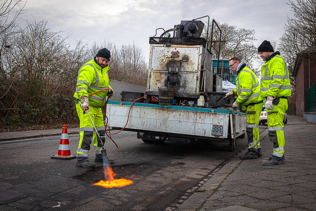 mags verfüllt seit Neuestem Schlaglöcher auf Mönchengladbachs Straßen heiß. Der Test soll zeigen, ob diese Methode nachhaltiger ist, als die bislang kalte Reparatur.